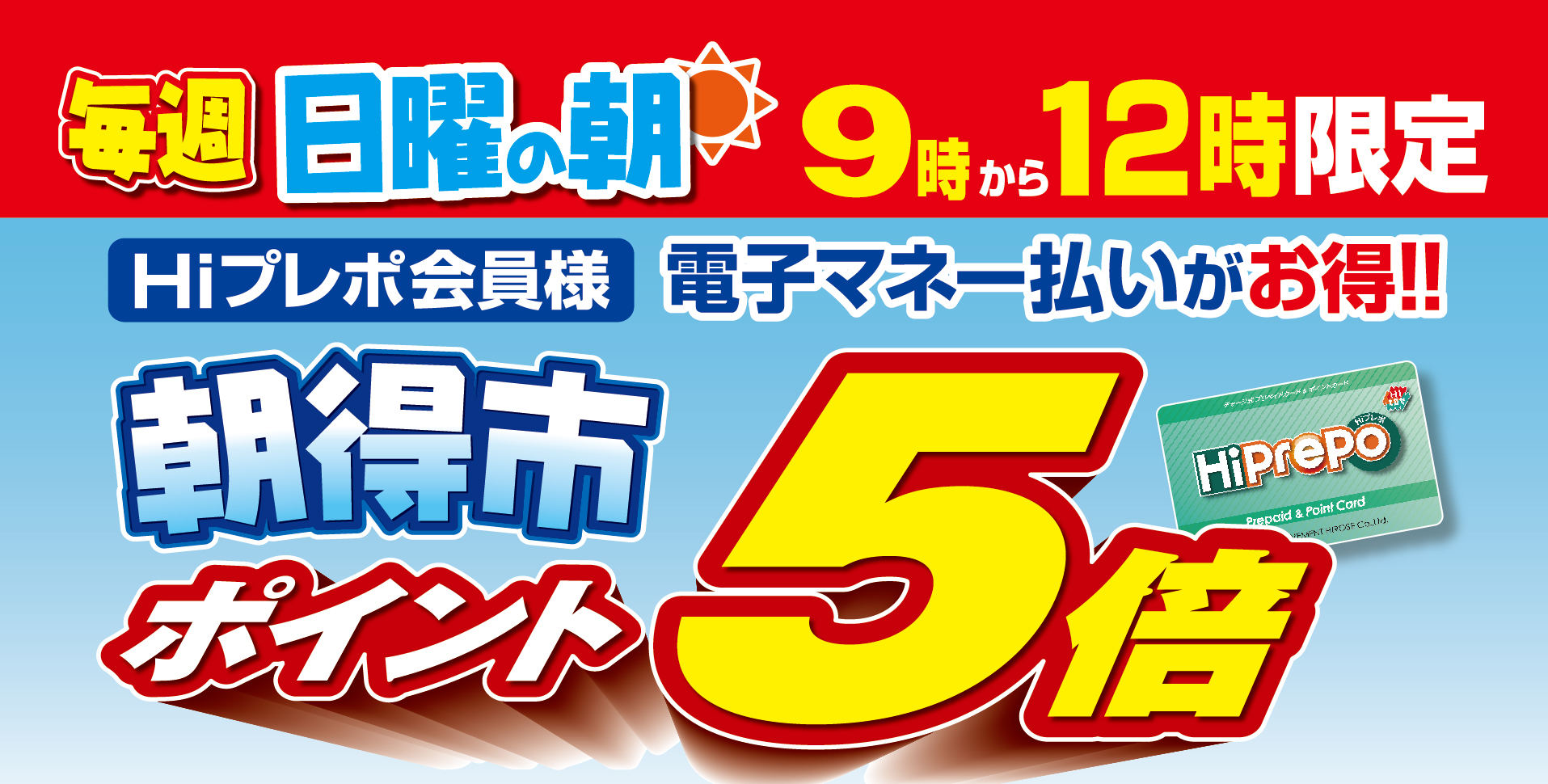 【毎週日曜】Hiプレポポイント5倍の朝得市開催!!