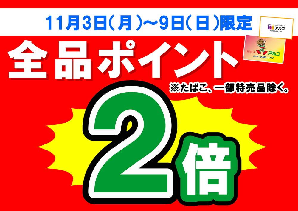 【酒アルコ関店限定】全品ポイント2倍デー