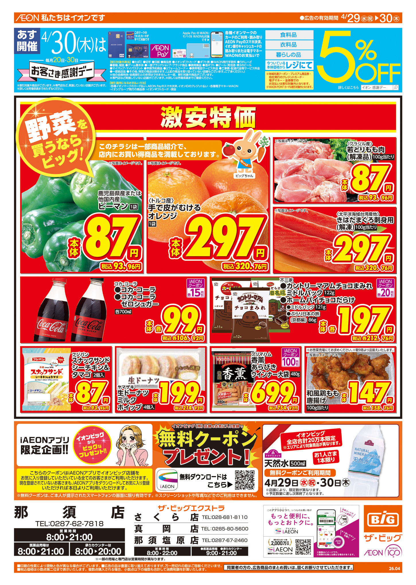 塩原関谷店のチラシ