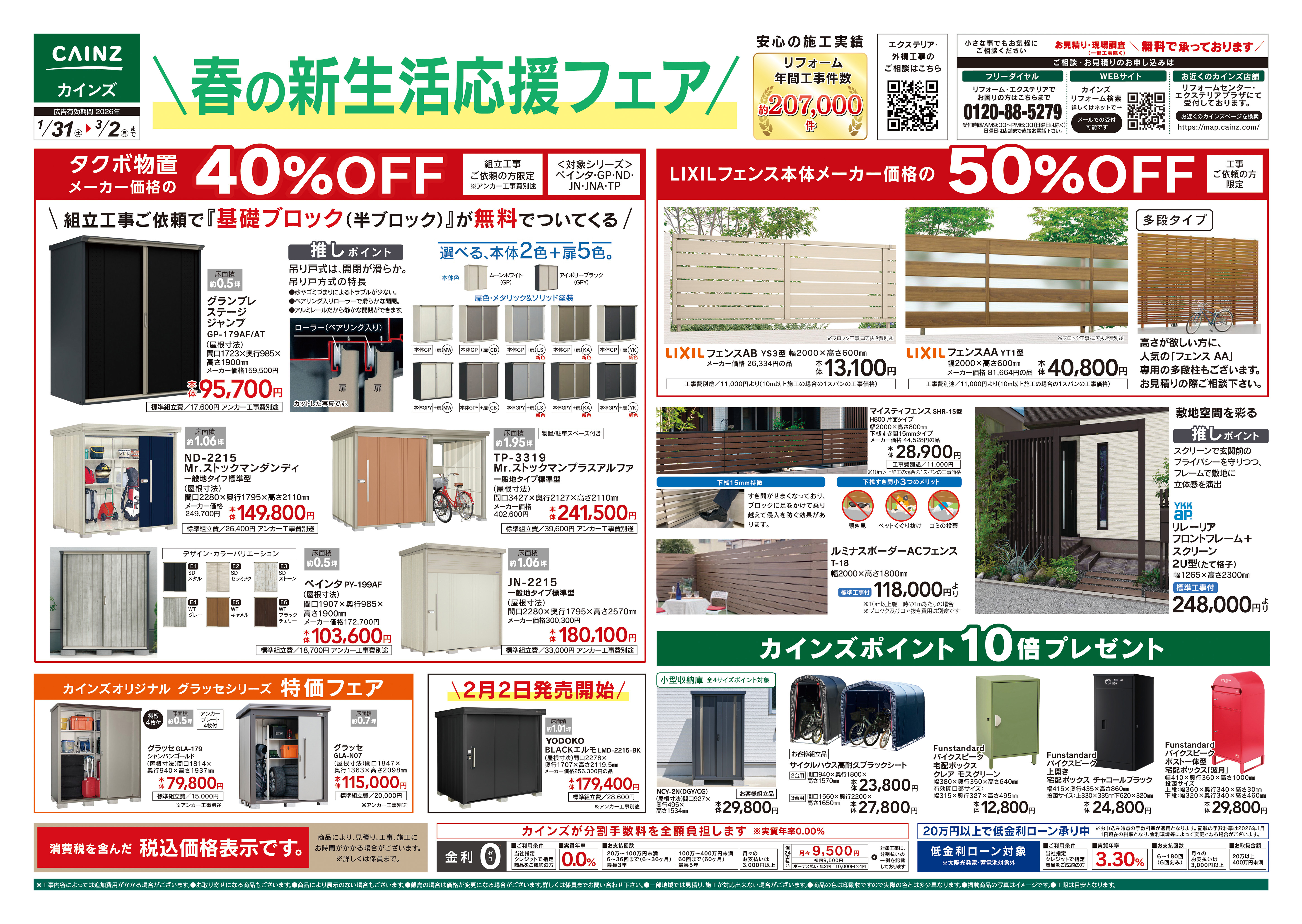 資材館 9:00~20:00 生活館 9:00~20:00