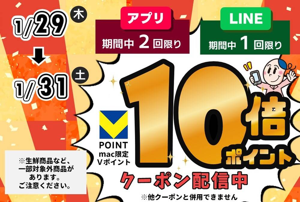 LINE・macアプリで10倍Pクーポン配信!