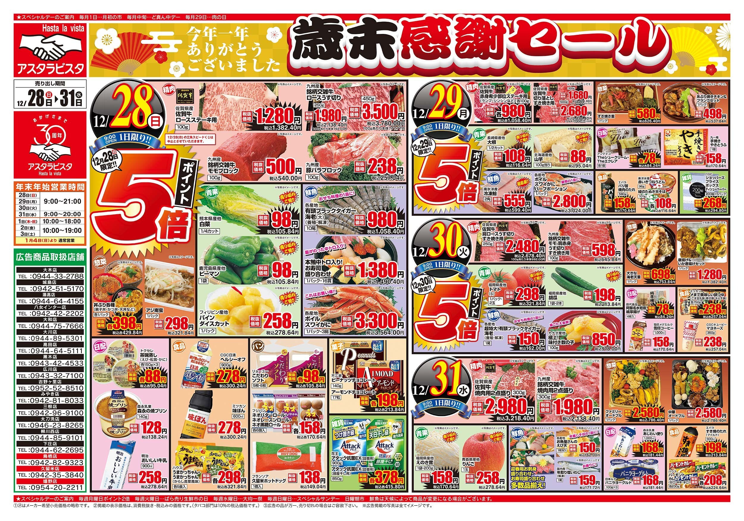 年末年始の期間中、営業時間が変更になっている可能性があります。詳しくはホームページ等をご確認ください。