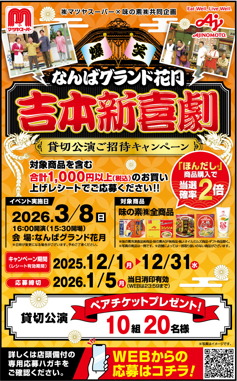 味の素 なんばグランド花月 吉本新喜劇 貸切公演ご招待キャンペーン