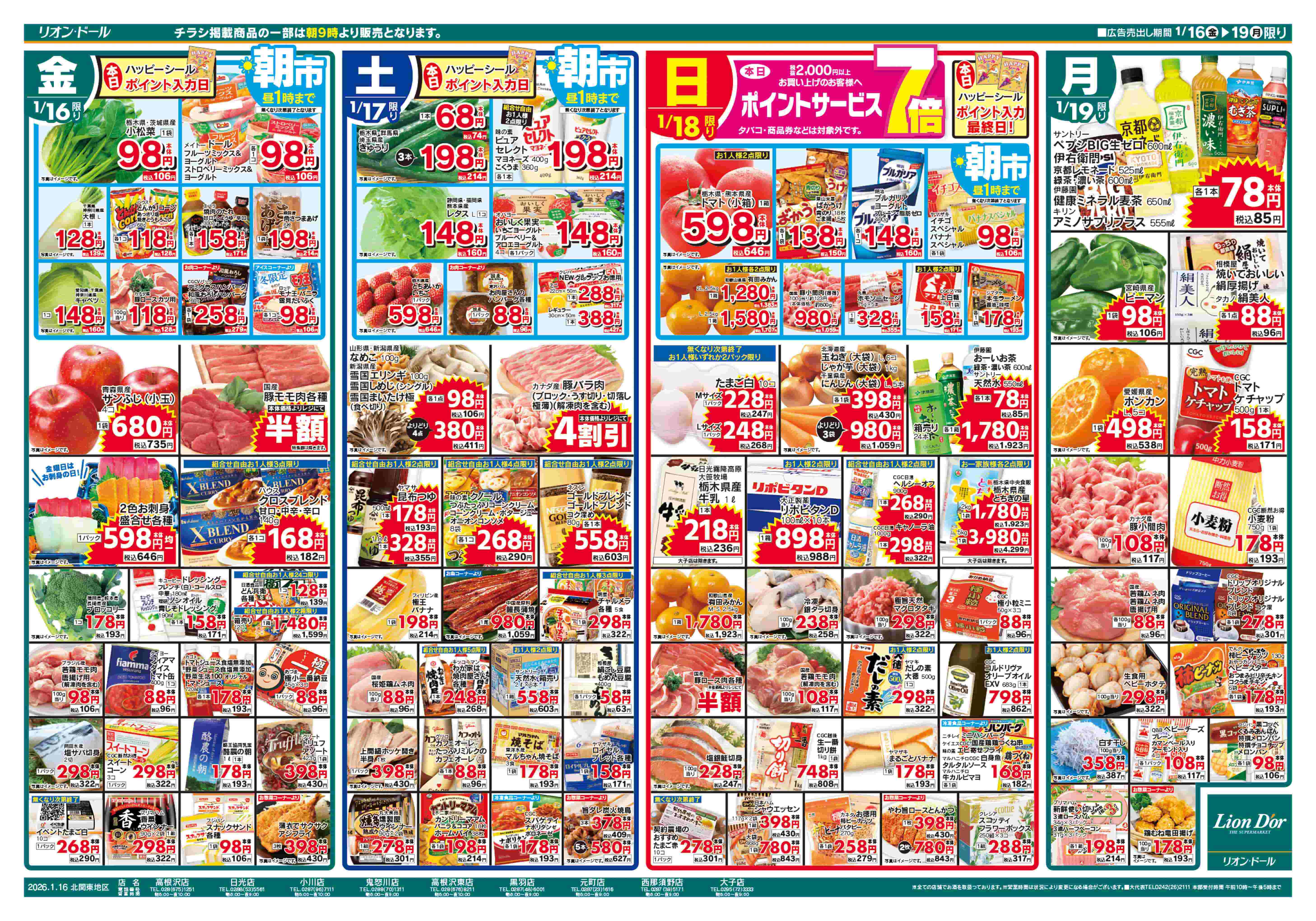 2026年01月13日〜2026年01月18日まで