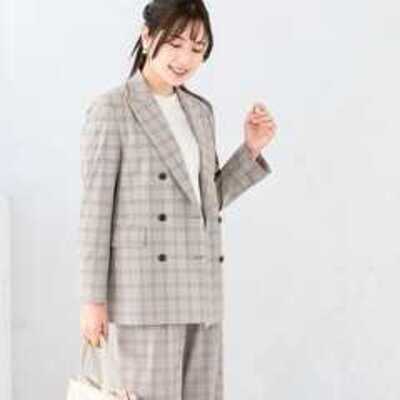 【レディース】【Oggiコラボ】グレージュチェック ダブルジャケット セットアップ着用可