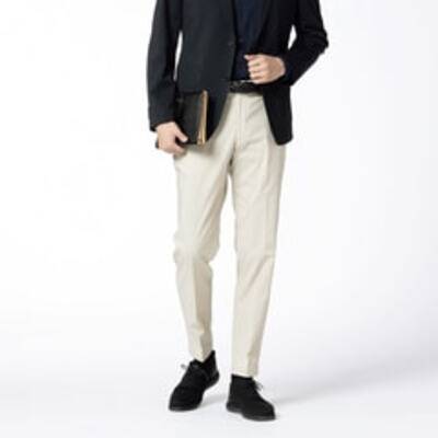 【メンズ】【らくQパンツ】裾上げ済 スーパーストレッチ テーパードノータック コットンライク 無地