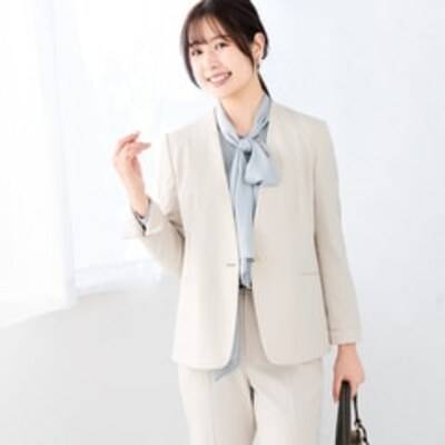 【レディース】【Oggiコラボ】ブライトツイルストレッチ ノーカラージャケット オフホワイト セットアップ着用可