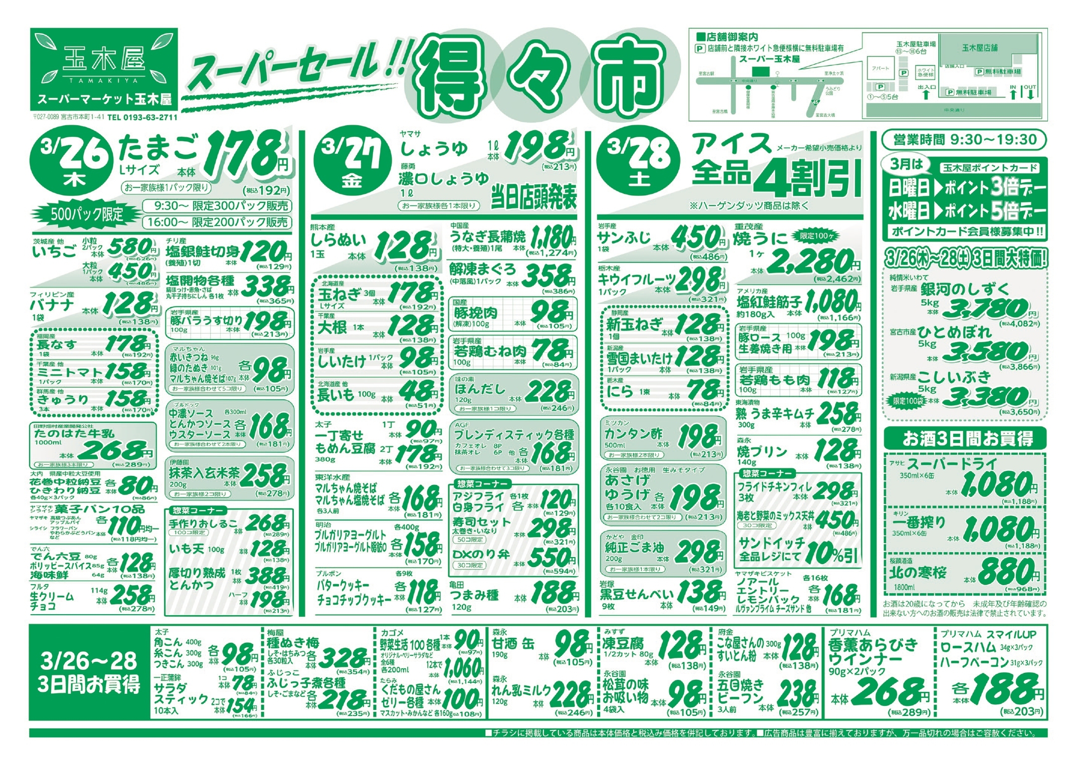 9:00-19:30(10月~3月は19:00閉店※灯油販売は10:00~)