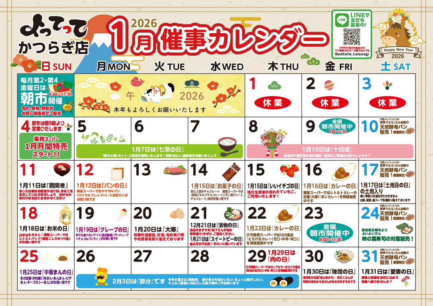 元日、棚卸など不定休