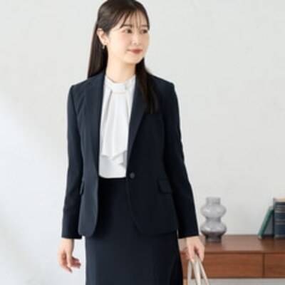 【レディース】パウダリーストレッチ 紺 テーラードジャケット セットアップ着用可
