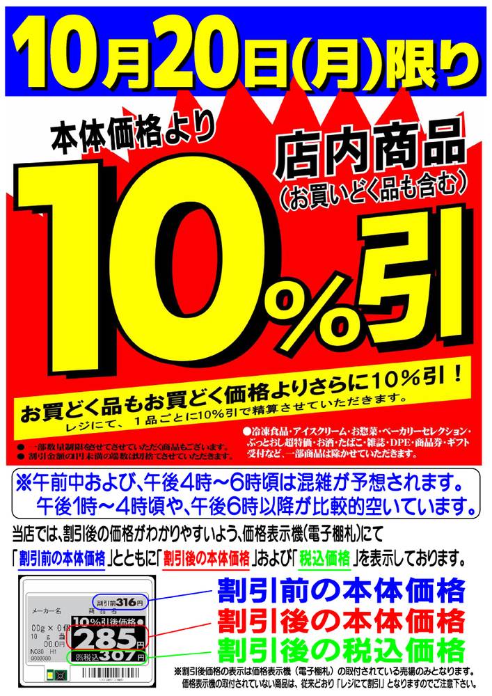 店内商品10%引