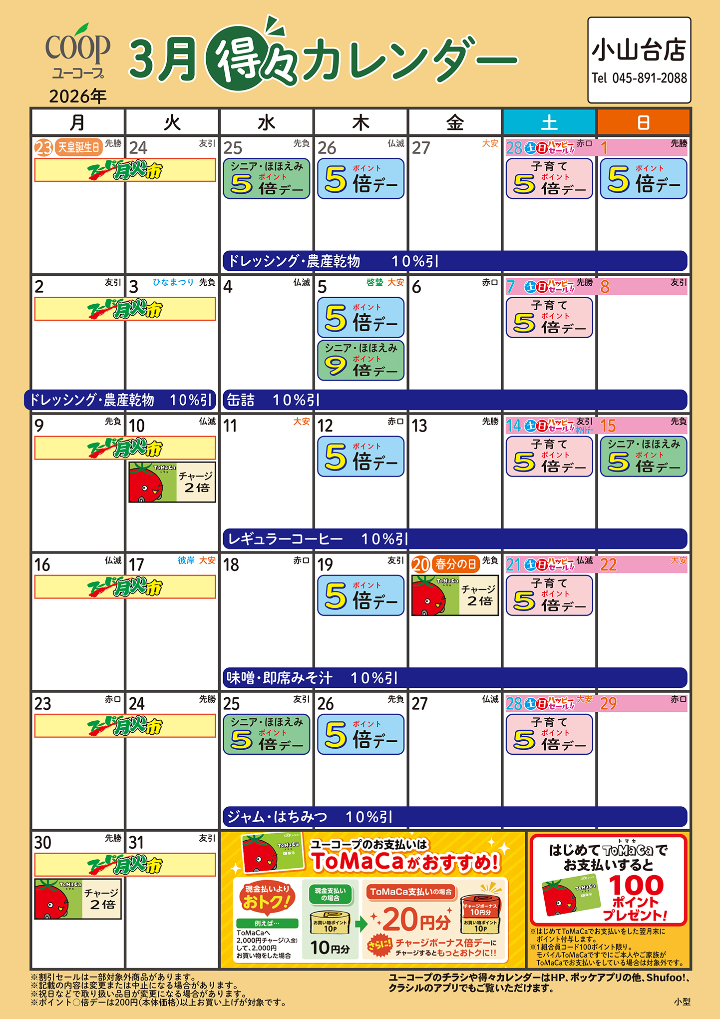 3月の得々カレンダー