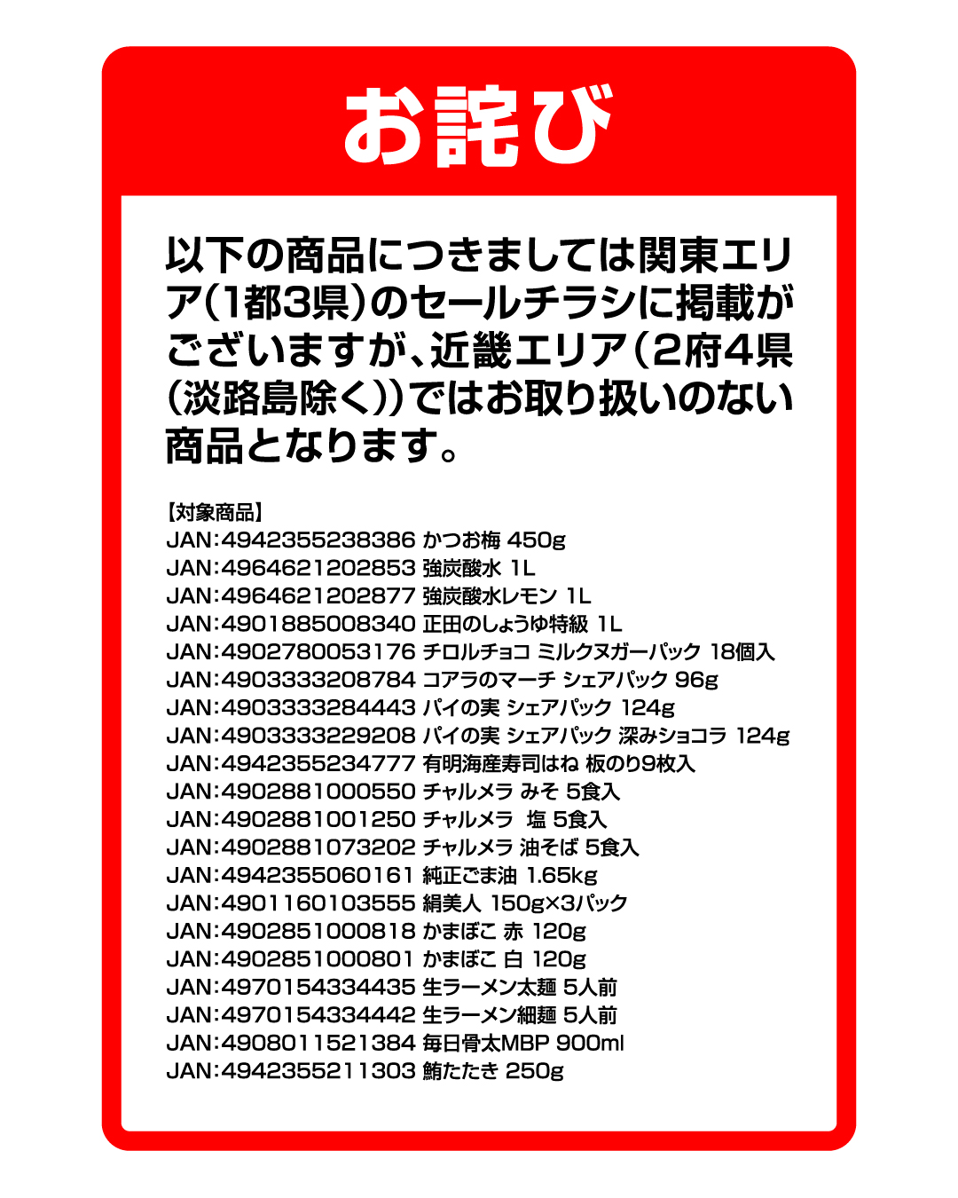 セールチラシの誤配布に関するお詫びとお知らせ
