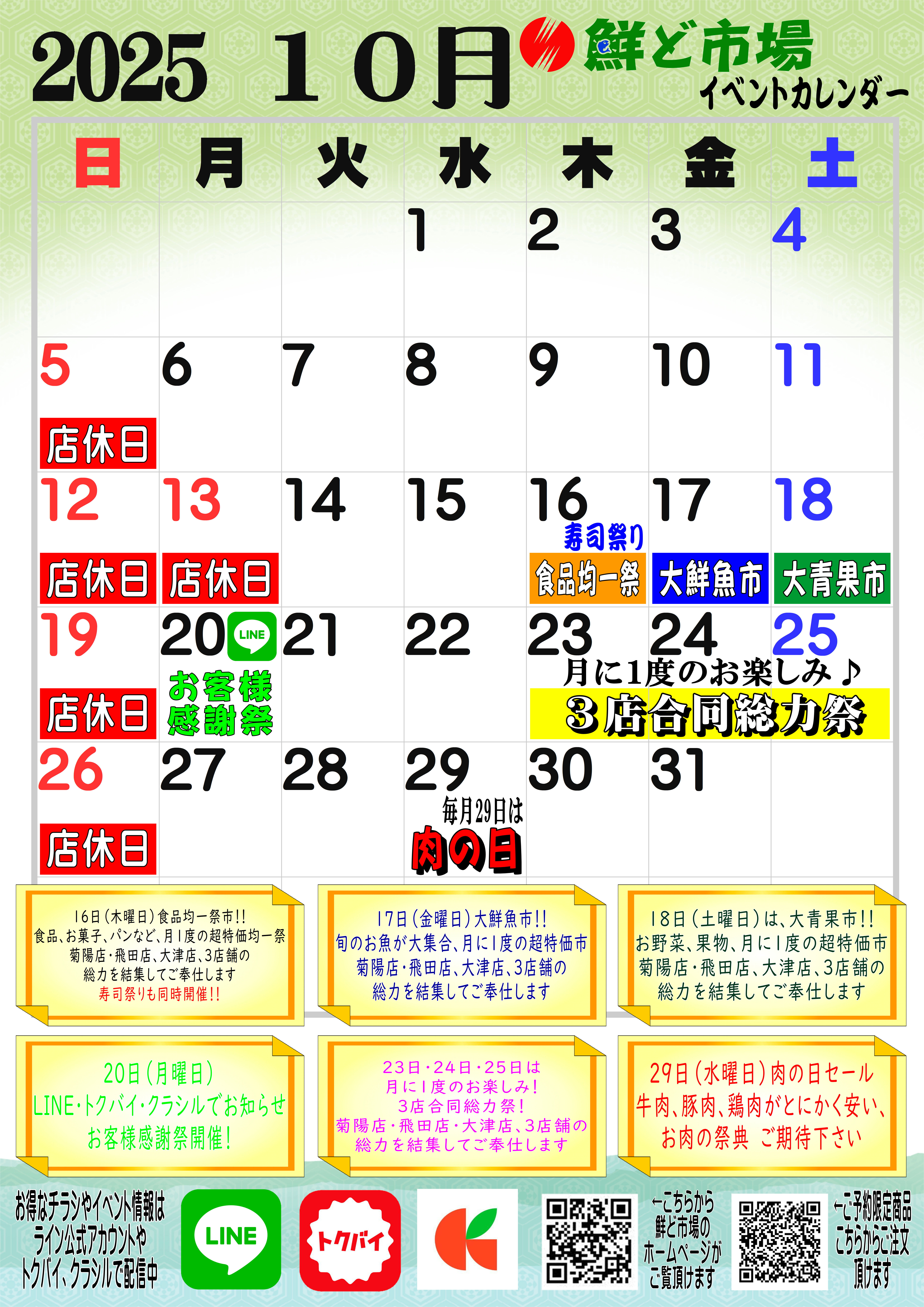 10月営業カレンダー
