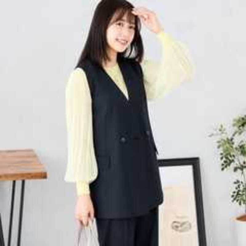 【レディース】【Oggiコラボ】ブライトツイルストレッチ ダブルジレ 紺 セットアップ着用可