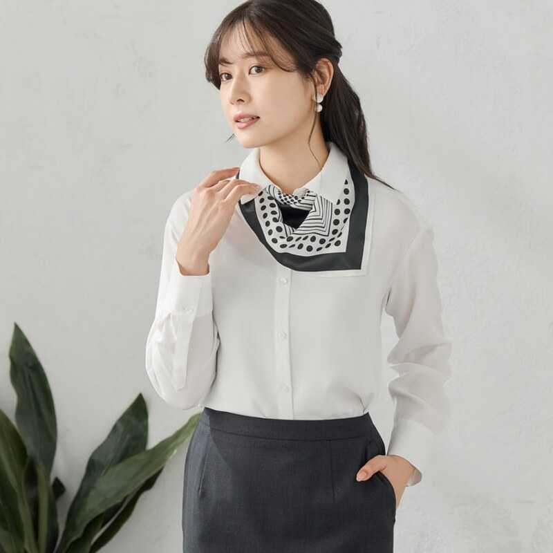 【レディース】スカーフ付き襟付きブラウス