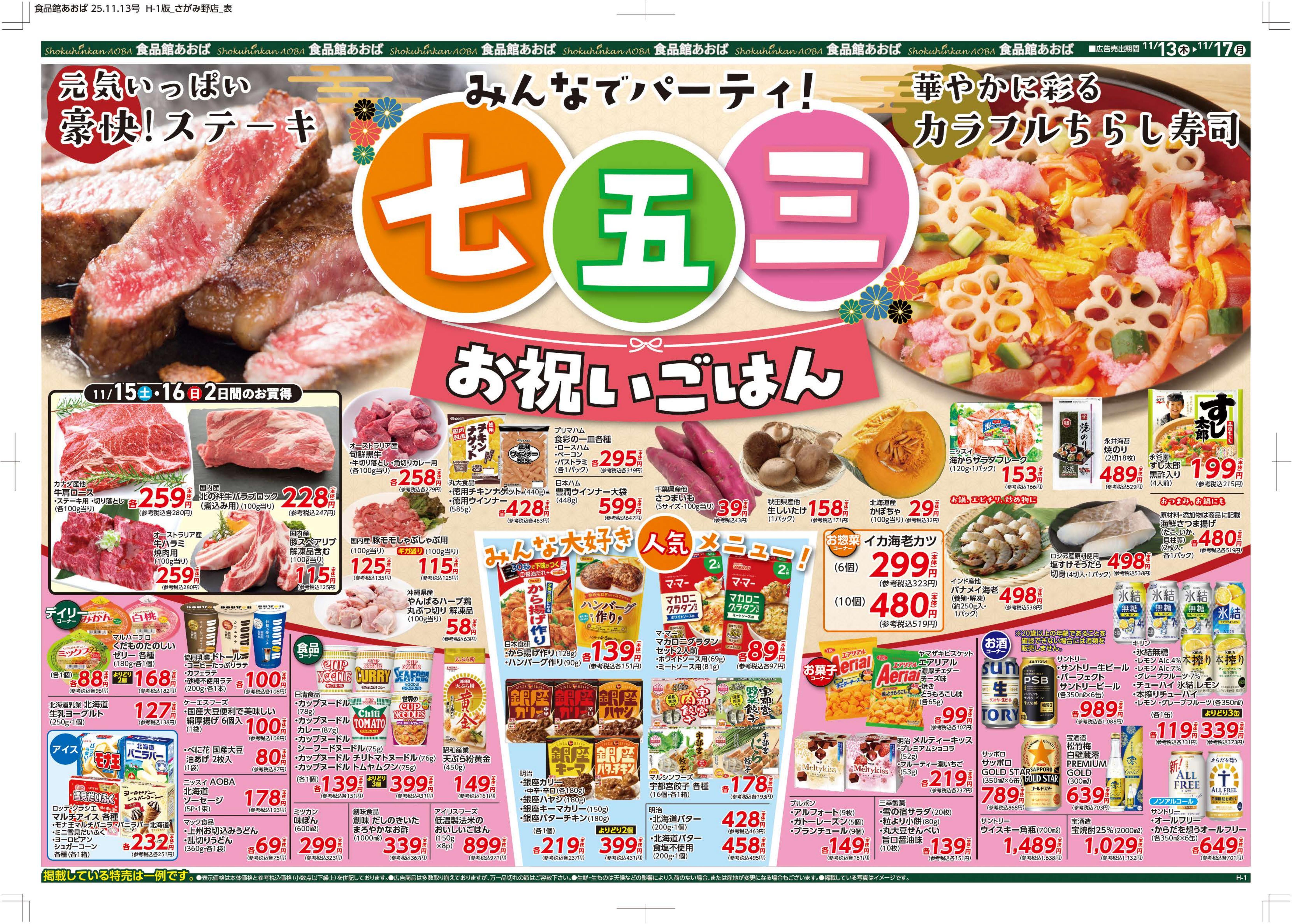11/15日(土)~11/17日(月) 週末は家族みんなでごちそうパーティー