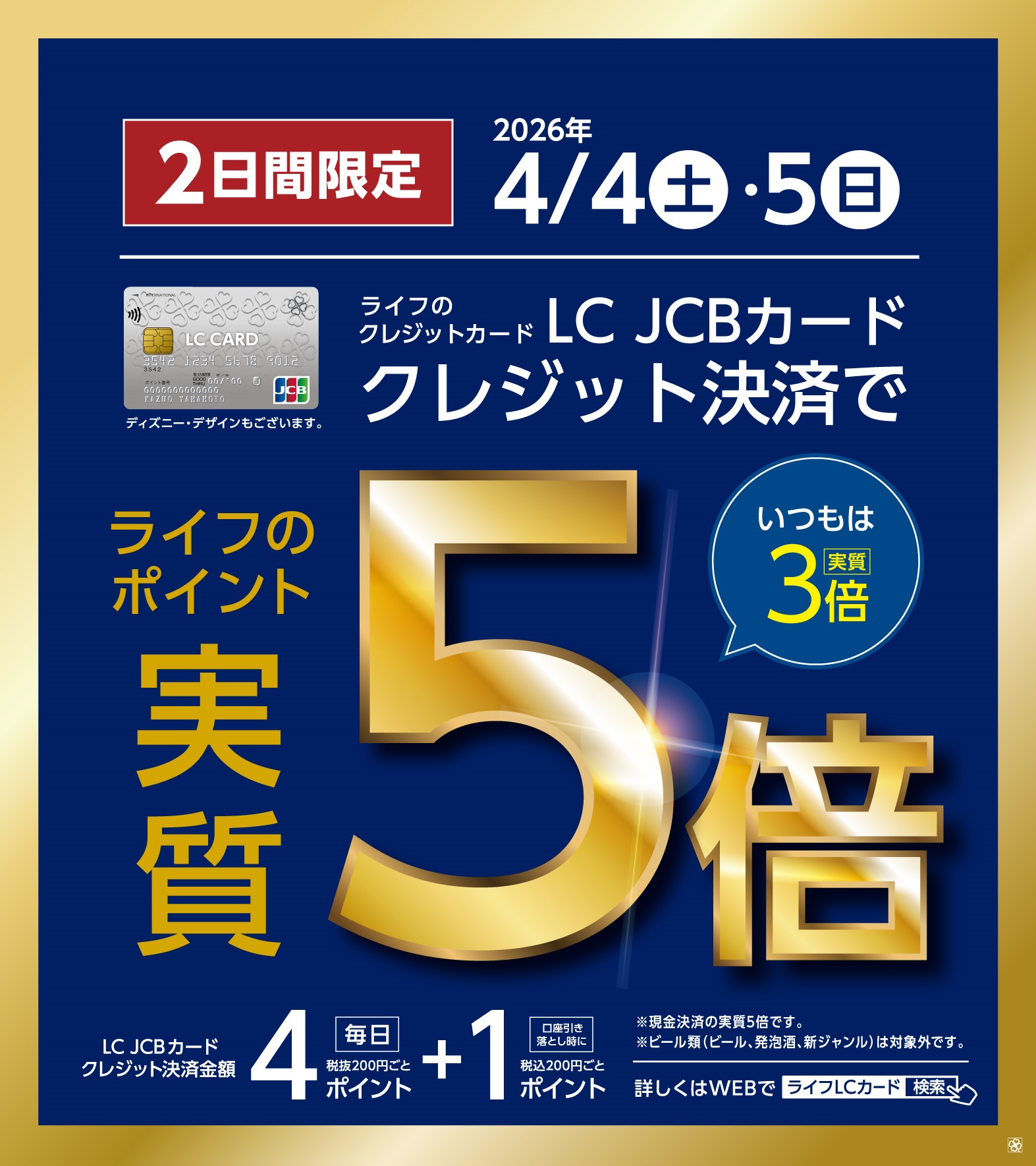 4/4・4/5はLCカードクレジット決済で実質5倍