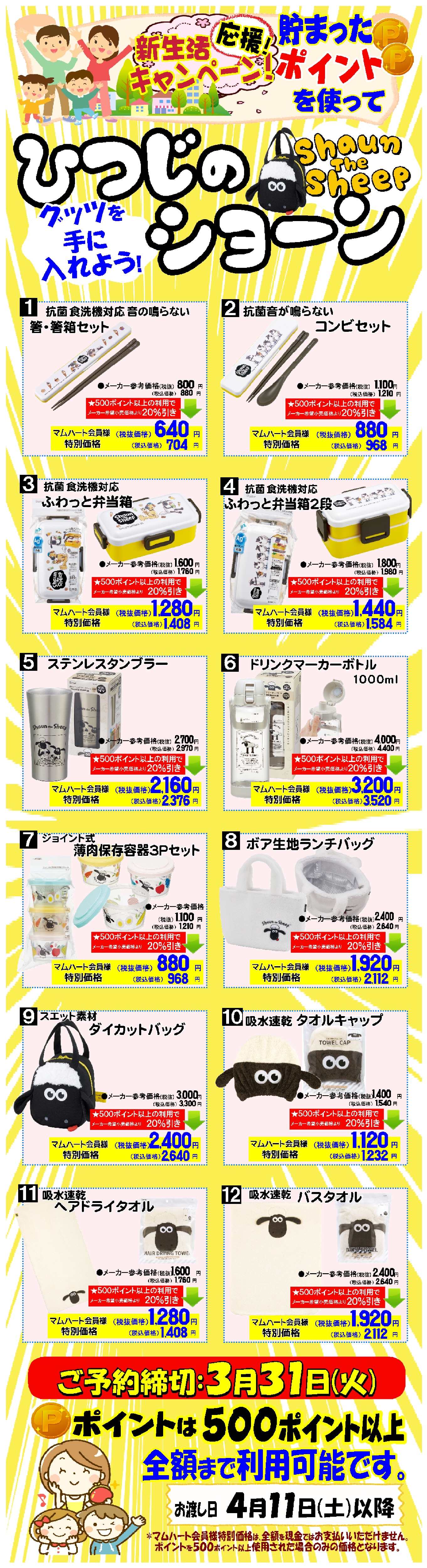 新生活応援キャンペーン:貯まったポイントを使って【ひつじのショーン】新生活グッズを手に入れませんか?