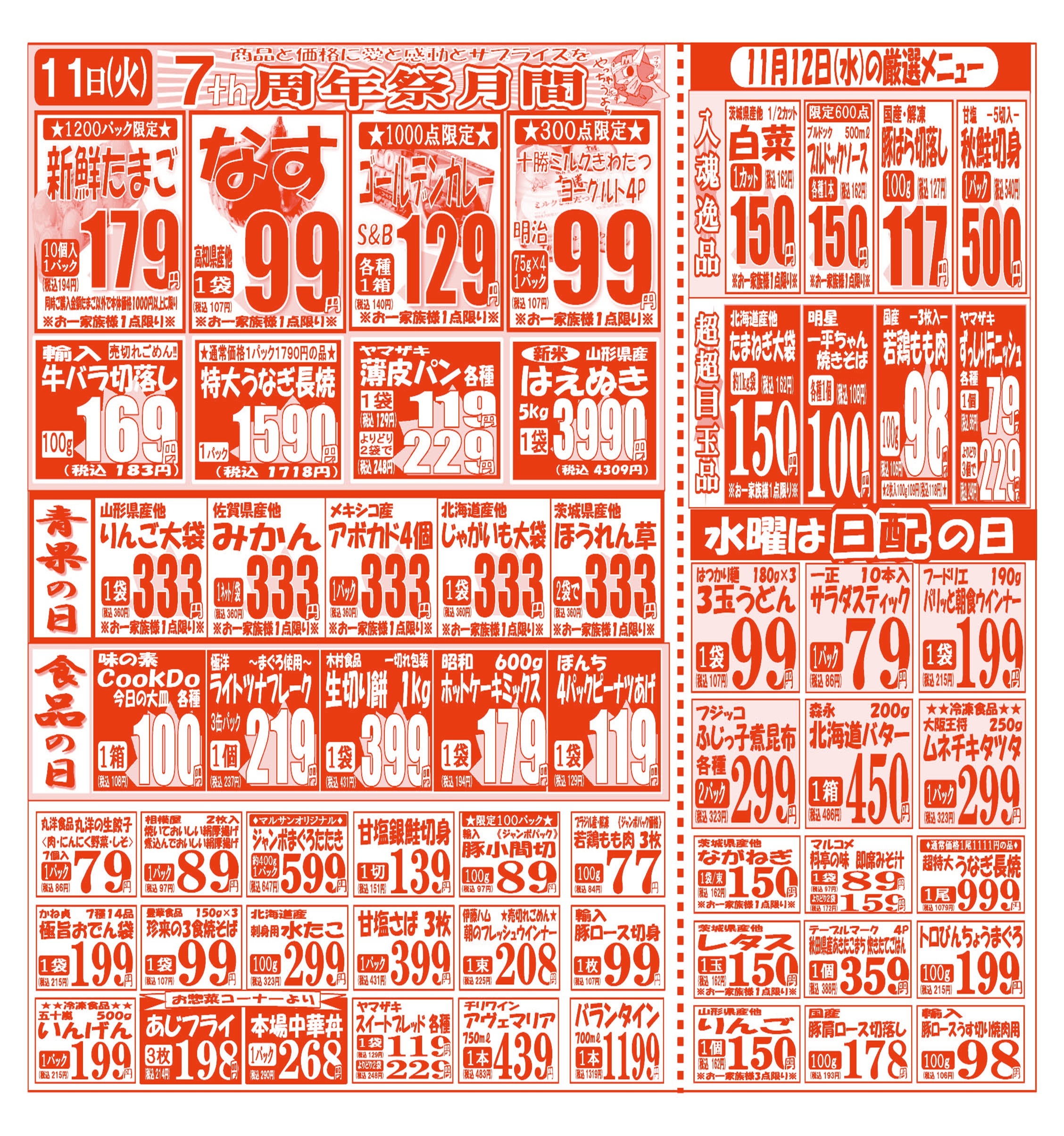 【11月11日(火)~11月14日(金)】 お買い得品のご案内です!!