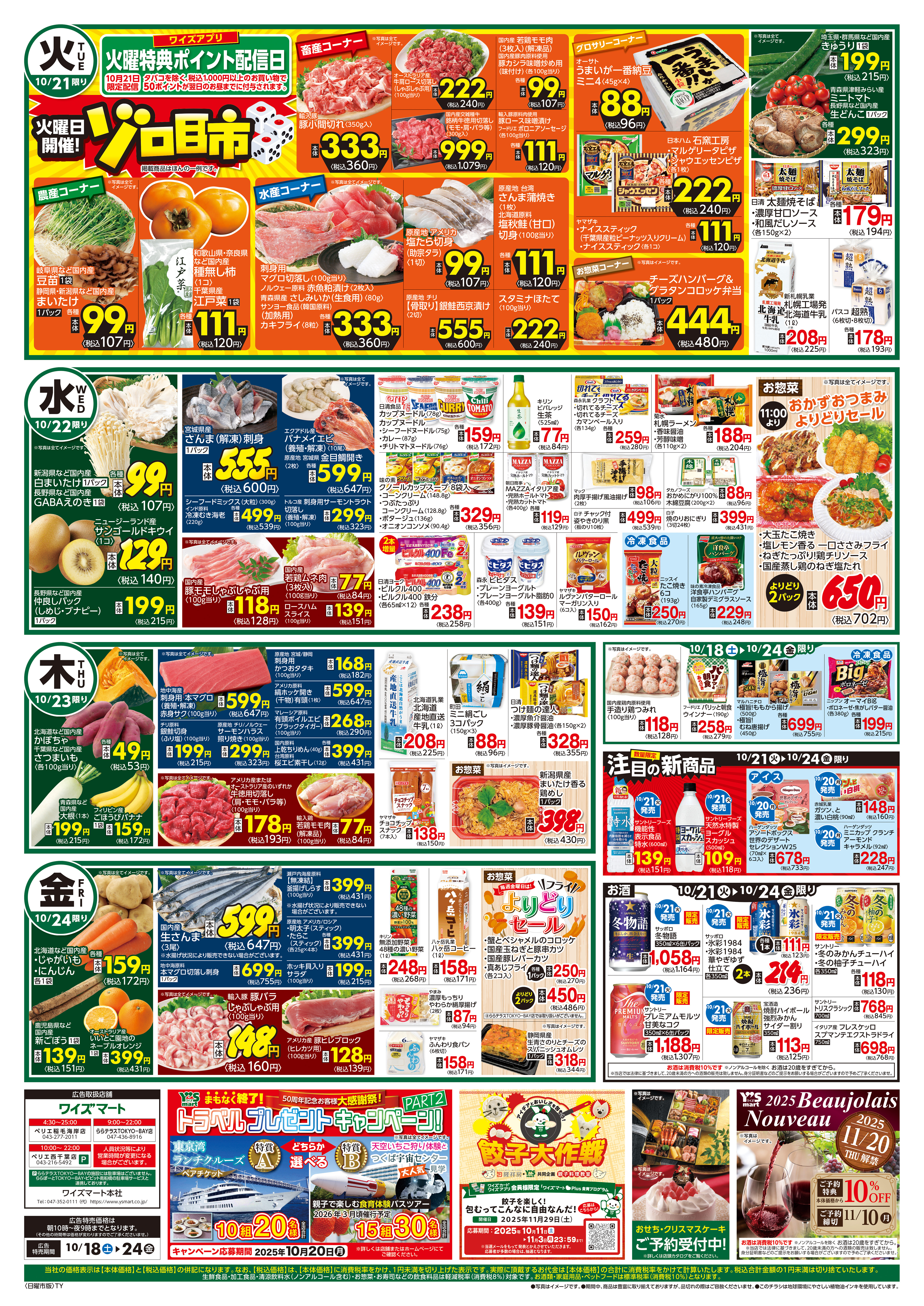 4:30~25:00 ※広告特売は10時から21時までとなります。 21時から翌日10時までは広告の価格と異なる場合がございます。