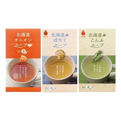●北海道オニオンスープ ●北海道ほたてスープ ●北海道こんぶスープ