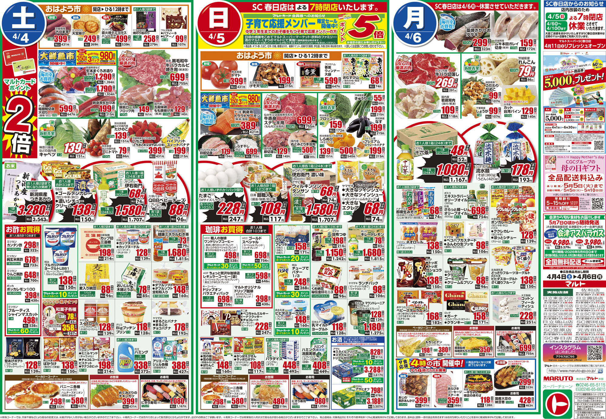 4月1日号WEBチラシ 旬な市・朝ごはん・春のお祝い:うら