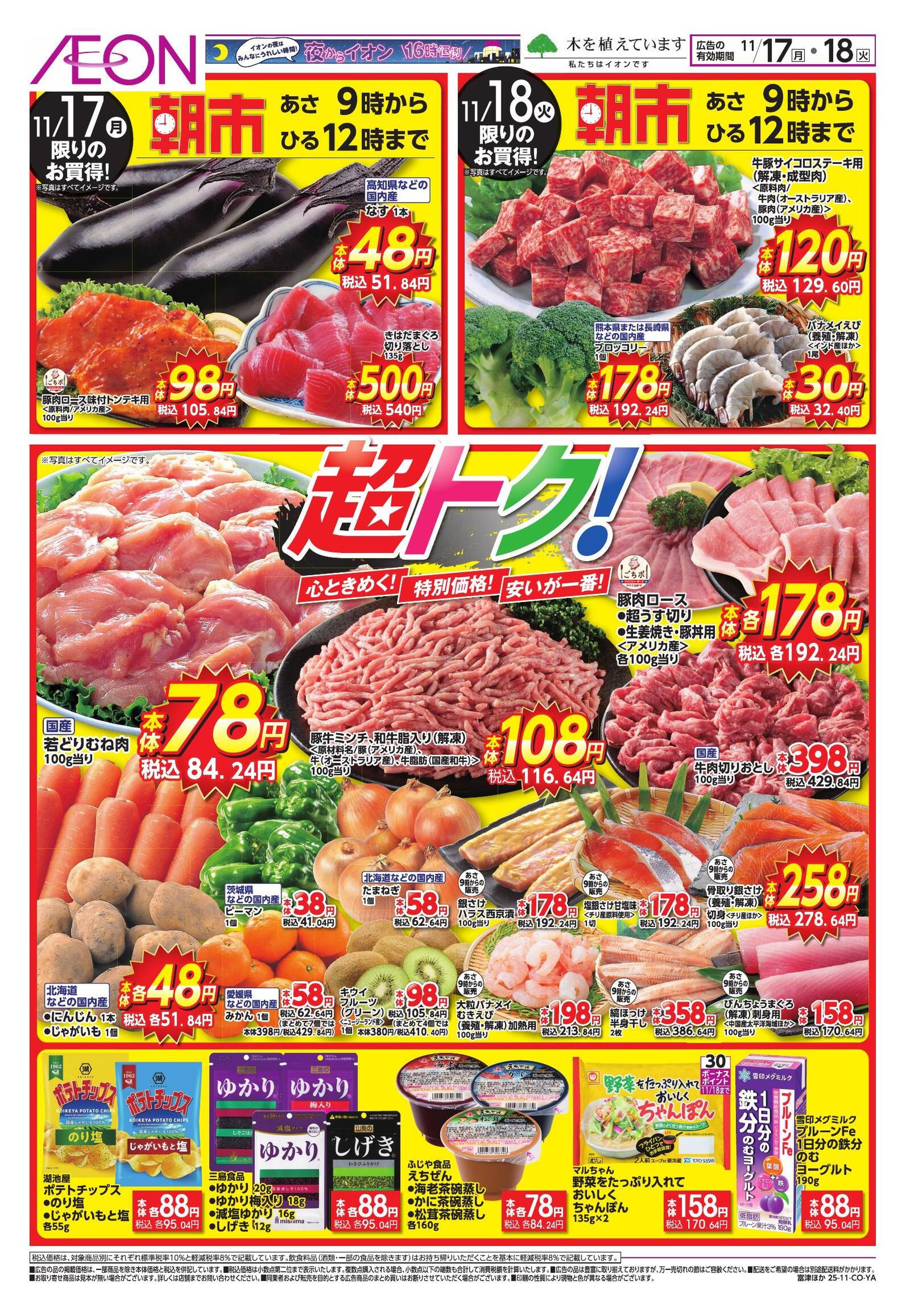4:30~25:00 ※広告特売は10時から21時までとなります。 21時から翌日10時までは広告の価格と異なる場合がございます。
