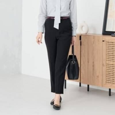 【レディース】パウダリーストレッチ 黒 クロップドパンツ セットアップ着用可