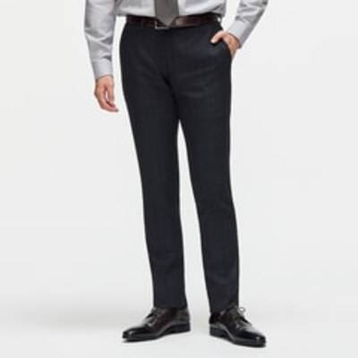 【メンズ】洗える ノンアイロンストレッチ テーパードノータックパンツ 紺グレンチェック