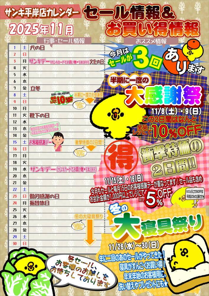 今月のお買い得情報