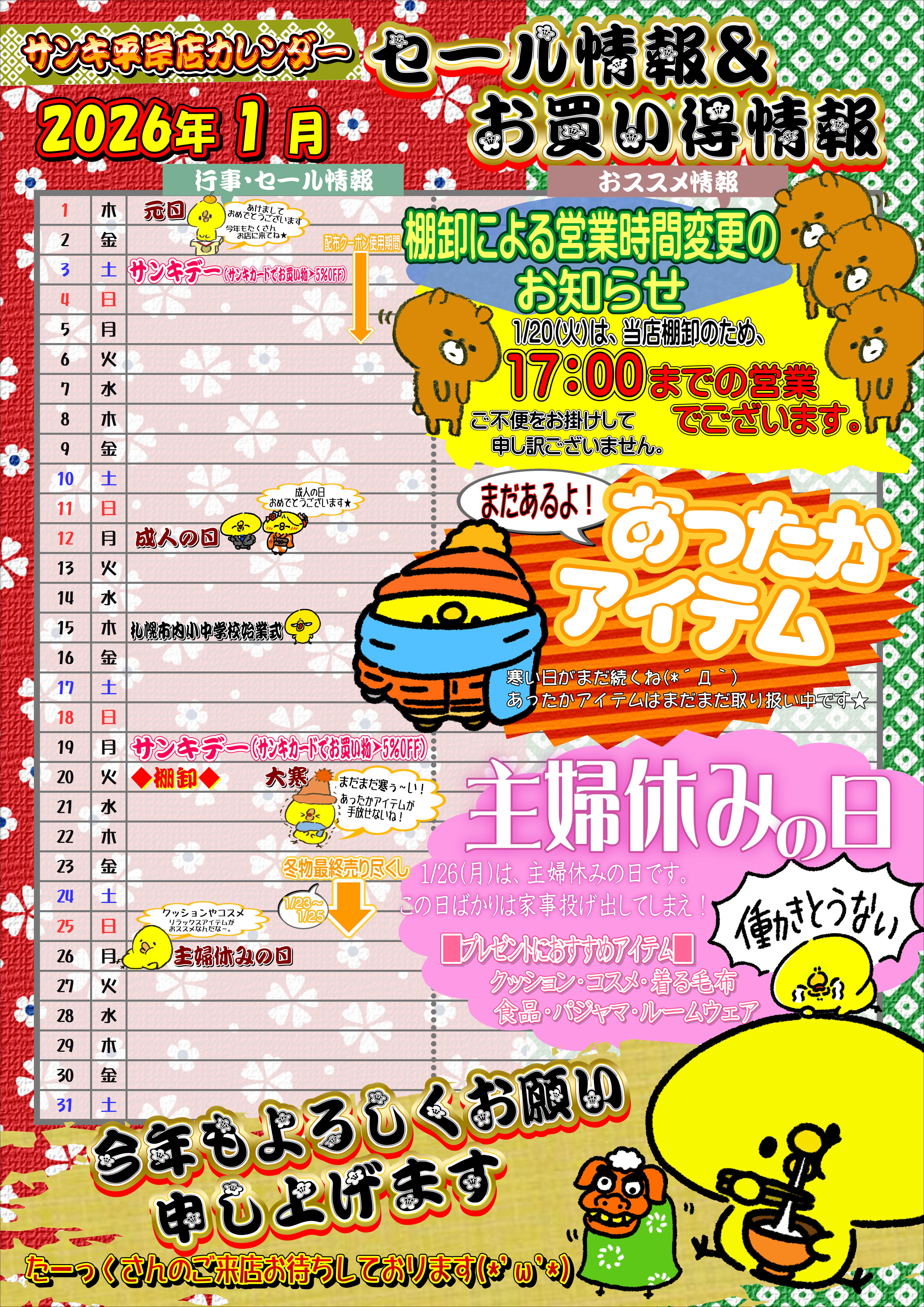 平岸店カレンダー1月