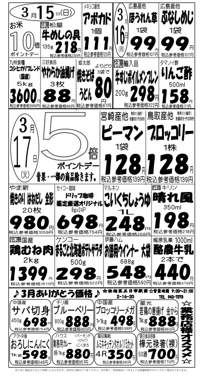 宇品店のチラシ
