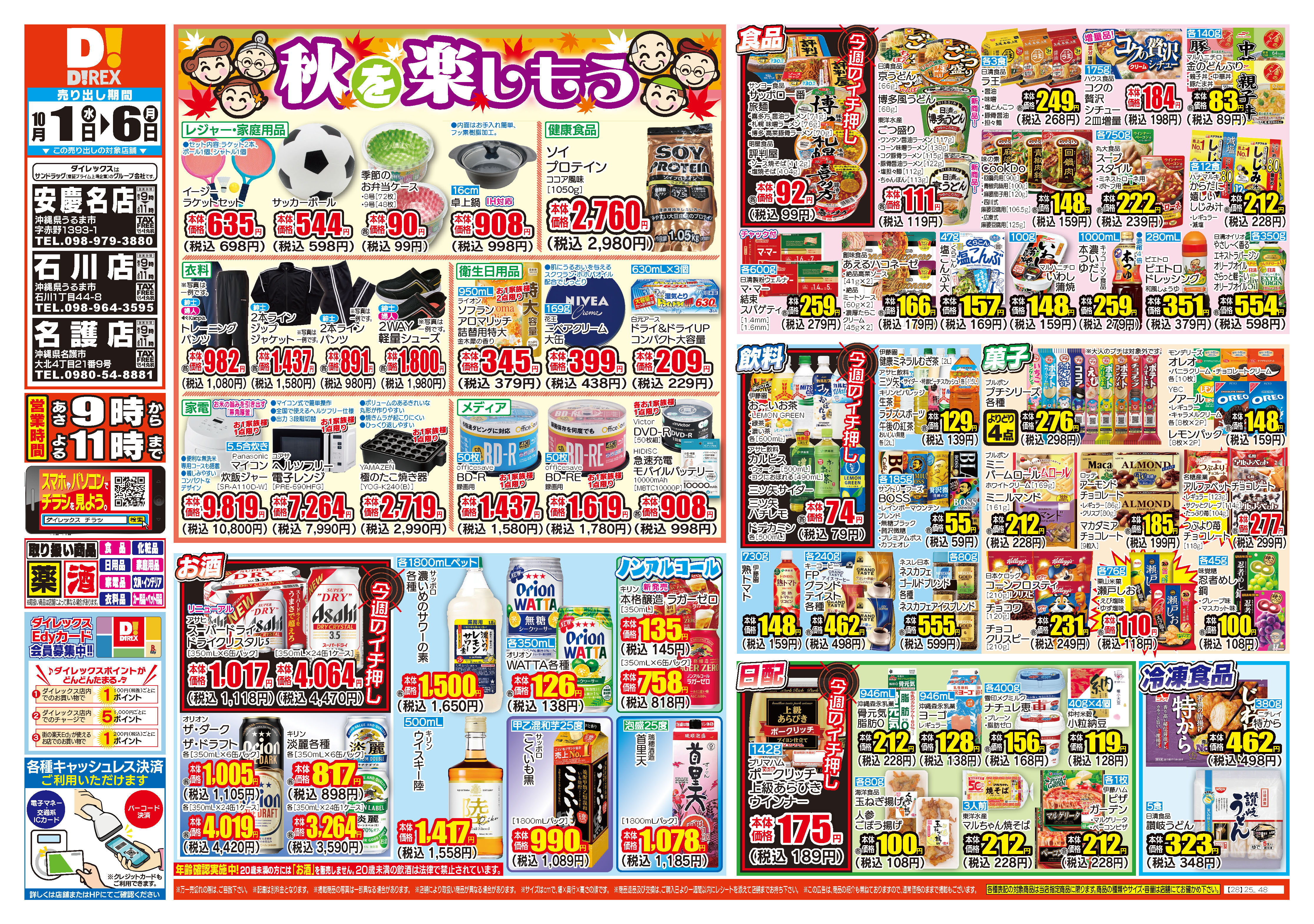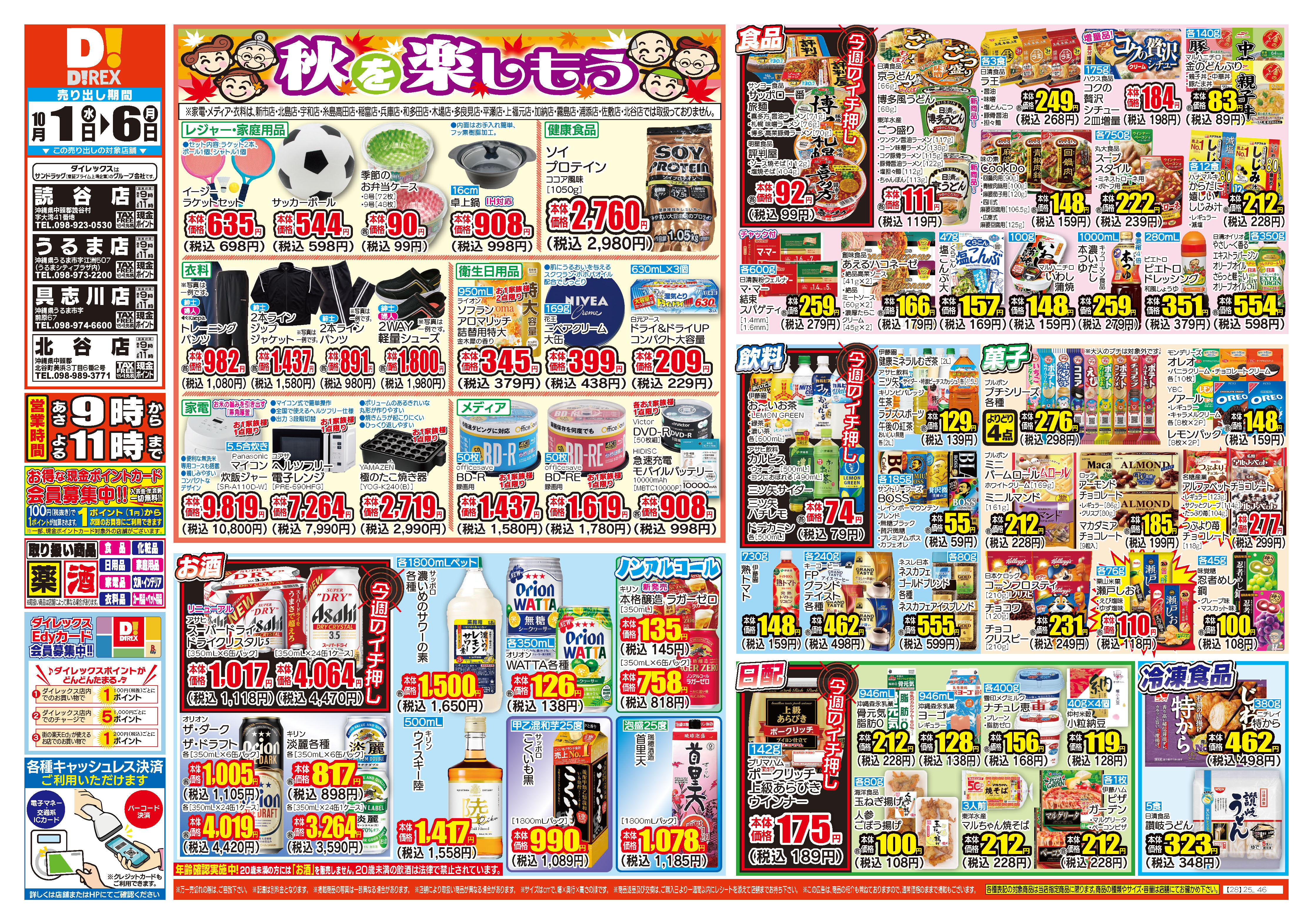 食品:あさ8時~よる11時 その他:あさ9時〜よる10時