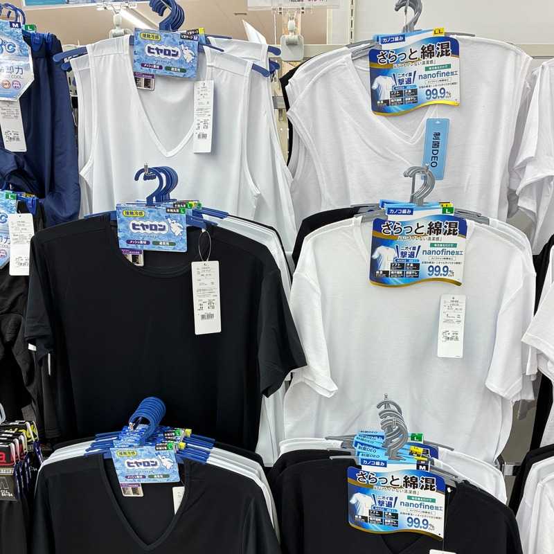 吸汗速乾、丸首半袖、V首・タンクトップ等