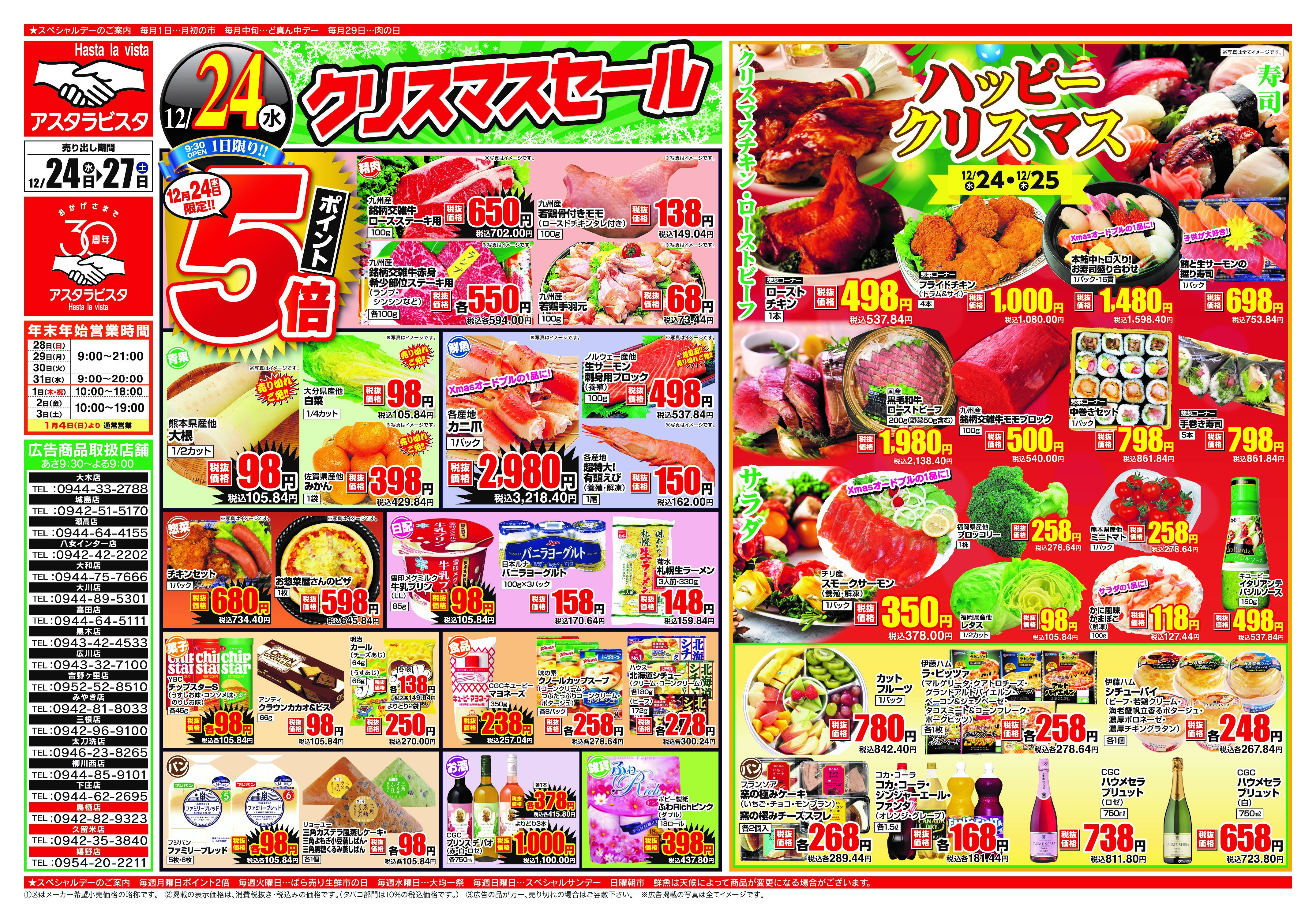 年末年始の期間中、営業時間が変更になっている可能性があります。詳しくはホームページ等をご確認ください。