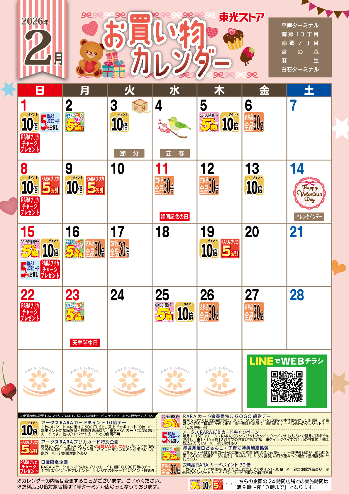 2月お買物カレンダー