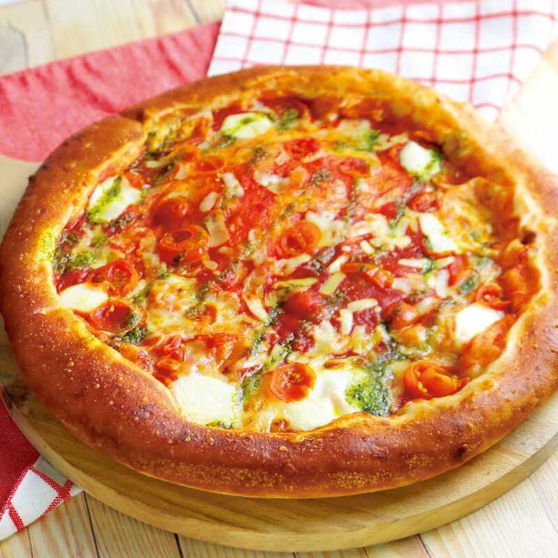 もっちり食感・旨味を感じる独自配合のピザ生地と、酸味を効かせたピザソースが相性抜群です。※写真はイメージです。