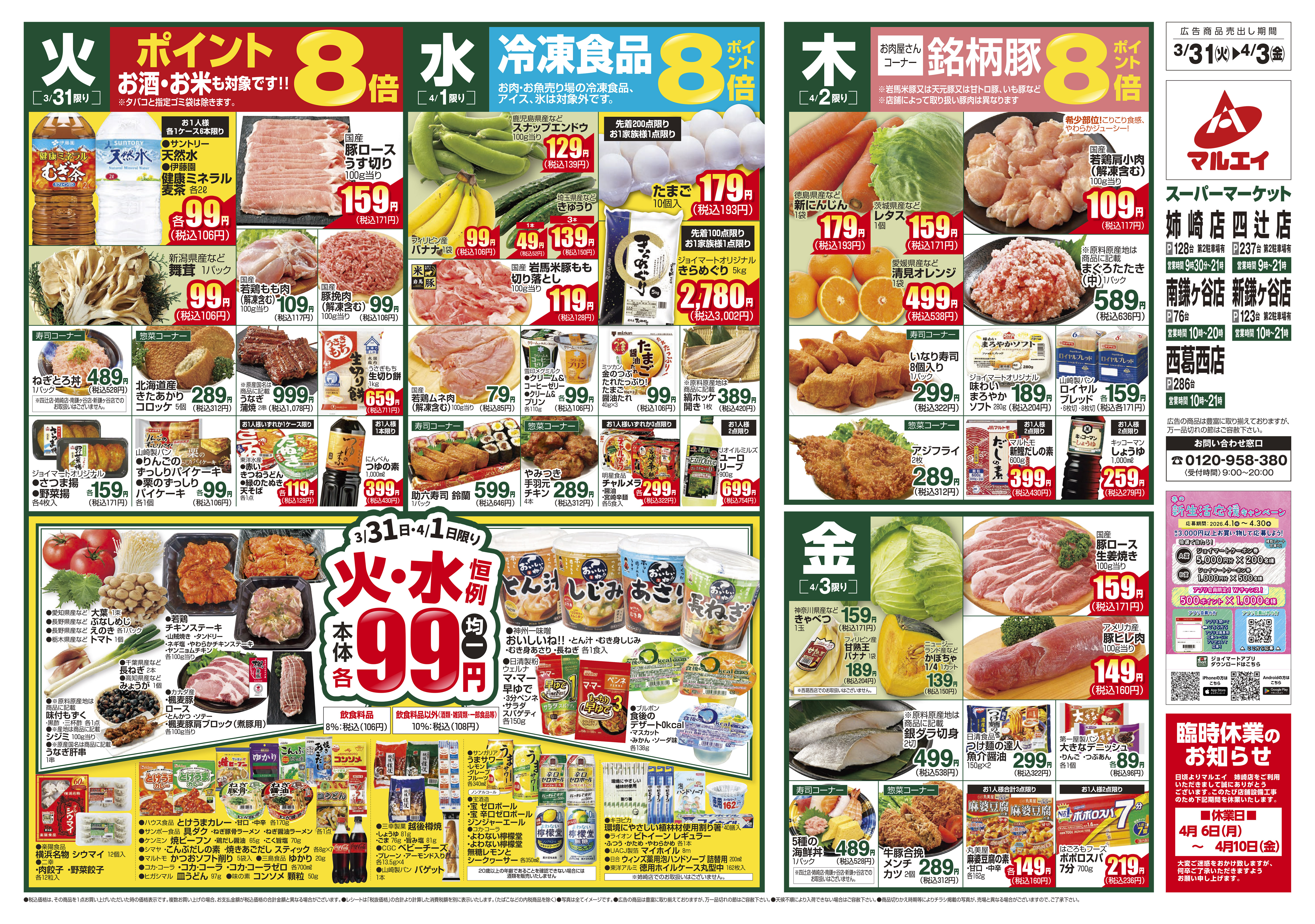 8:00~25:00 ※一時お休みさせていただく場合もございますので、予めご了承ください。 広告特売は10時から21時までとなります。 21時から翌日10時までは広告の価格と異なる場合がございます。