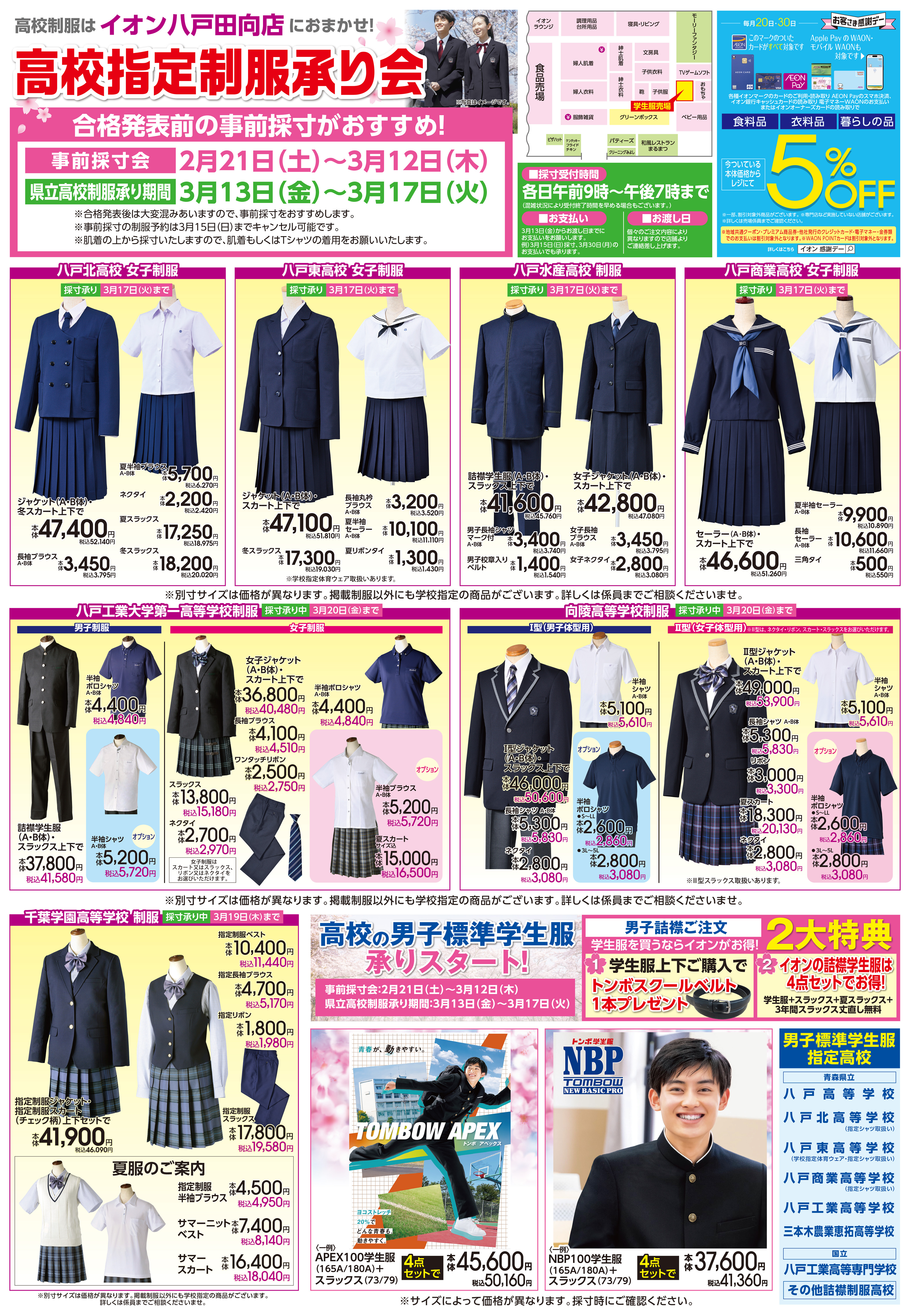 イオン1階食品売場 8時~22時 イオン1階サービスカウンター 9時~20時 イオン1階医薬品売場 9時~20時 イオン1階化粧品売場 9時~21時 イオン2階衣料品と暮らしの品売場 9時~21時 (おもちゃ、テレビゲーム、トレカ、写真印刷コーナー 9時~20時) (2024年7月より、文具のお取扱いは終了致しました) サンロード青森 1.2階 10:00~20:00 サンロード青森 3階 10:00~21:00 (飲食店は11:00~21:00)