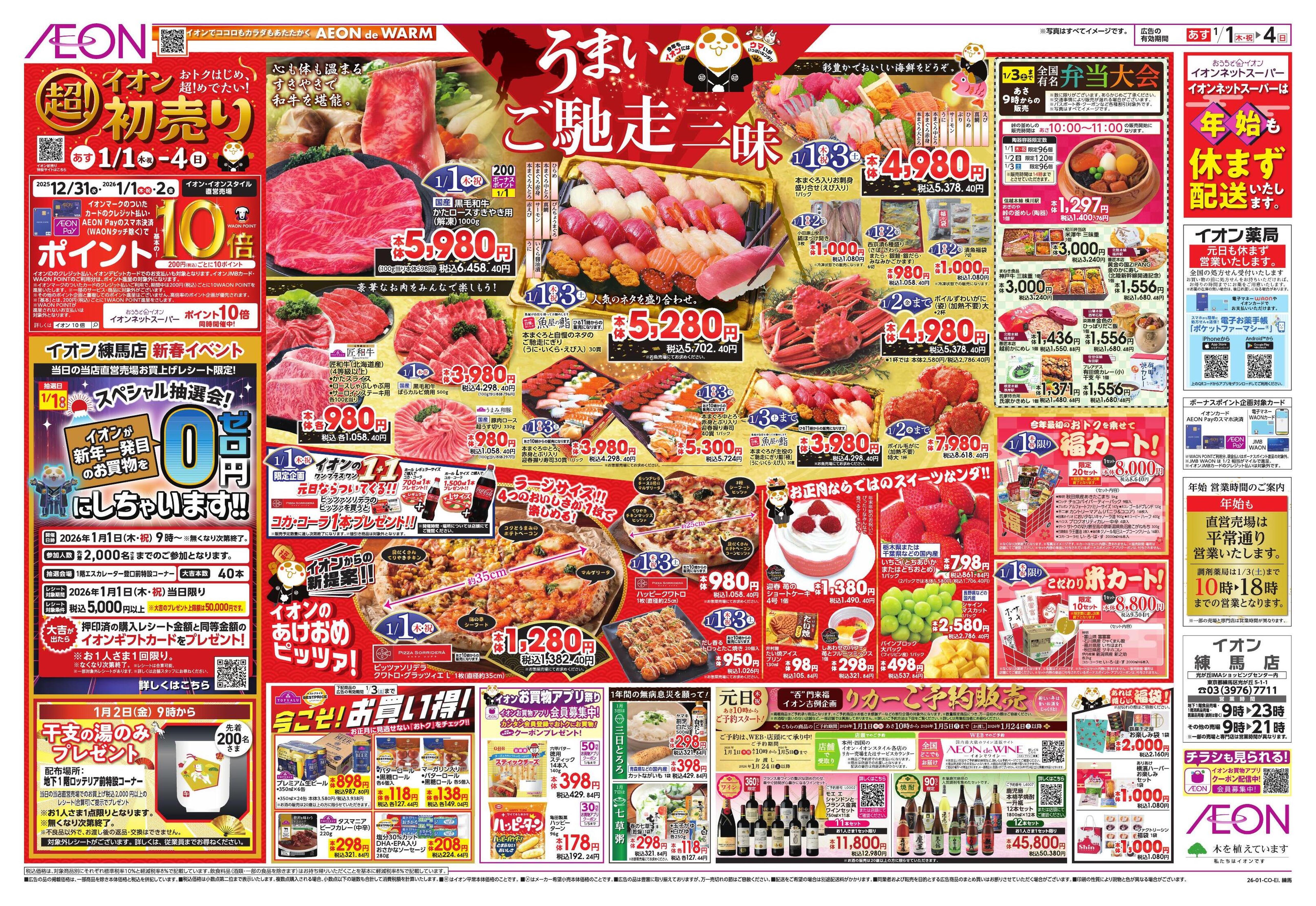 ■通常営業時間 平日:10:00~19:30 土日祝日:10:00~20:00 ※土日祝および期間により、急な変動することがありますので詳細はホームページを確認ください ■年末年始営業時間 ・12/30(火):10:00~19:30 ・12/31(水):10:00~17:00 ・1/1(木):休業 ・1/2(金):10:00~19:30 ・1/3(土):10:00~20:00 ・1/4(日):10:00~20:00 ・急遽営業時間に修正が入る場合がございます。詳しくは弊社ホームページを確認ください。