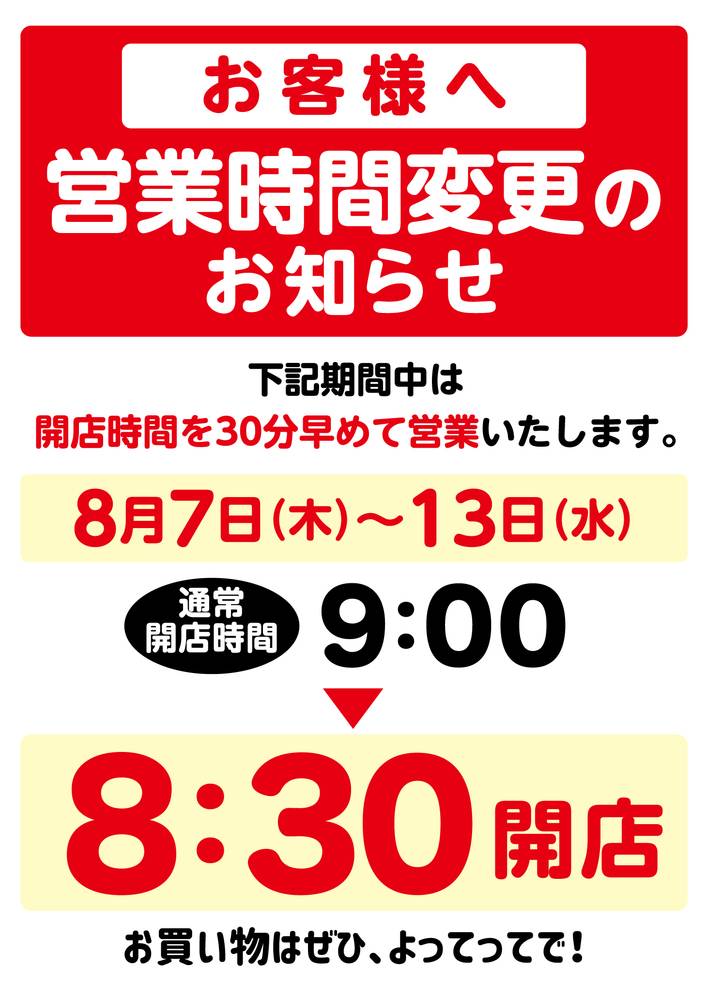 9:00-20:00 資材館7:00‐20:00(日曜以外)