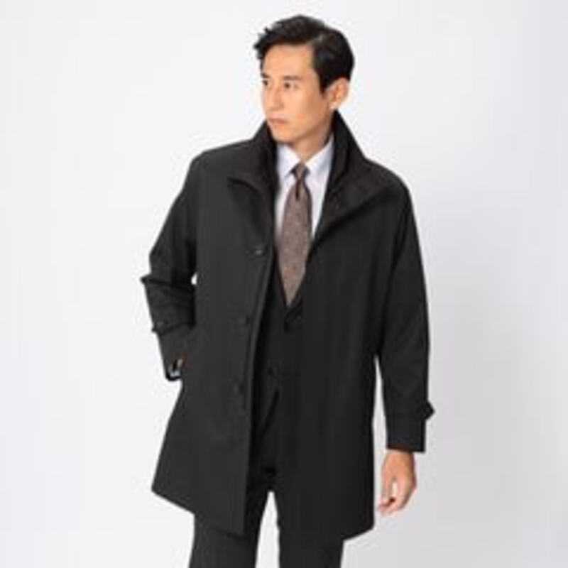 【メンズ】はっ水 ストレッチ 防風 軽量暖かウエザーサポートコート 黒 LES MUES スリム