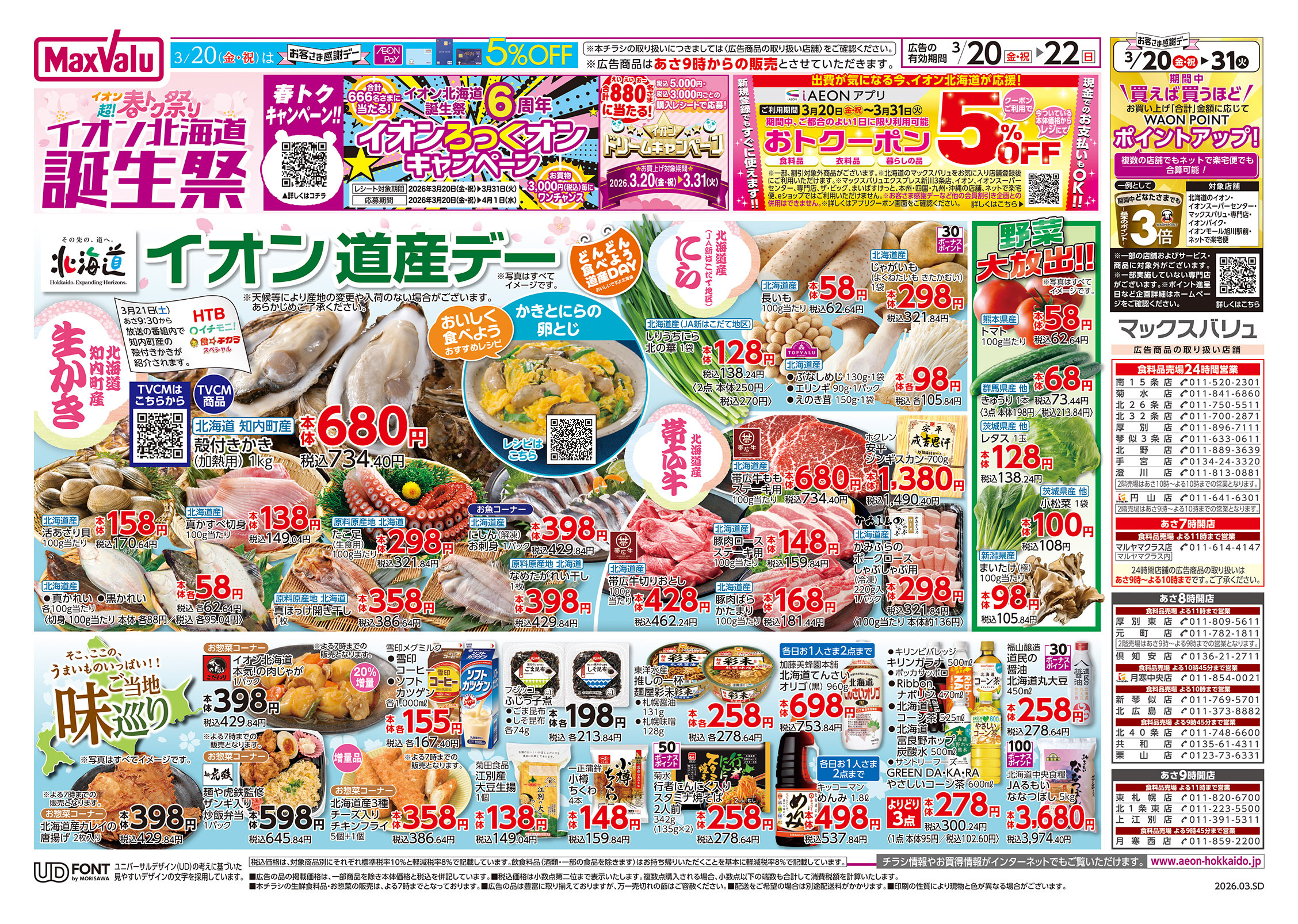 北海道札幌市西区発寒八条12-1-1イオンモール札幌発寒1F