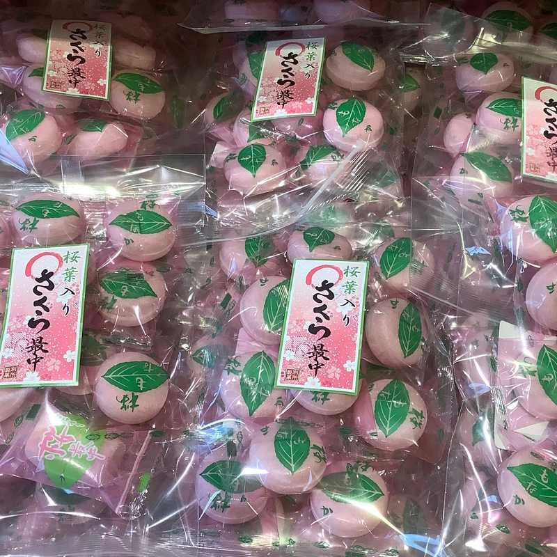 さくらフェアにて、桜葉入りのさくら最中を販売中です。この時期限定ですので、お買い逃しなく!