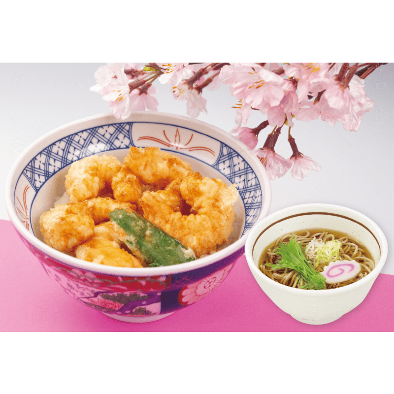 えび満開天丼とミニそば