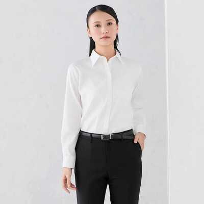 【レディース】白ドビーストライプ スキッパーシャツ