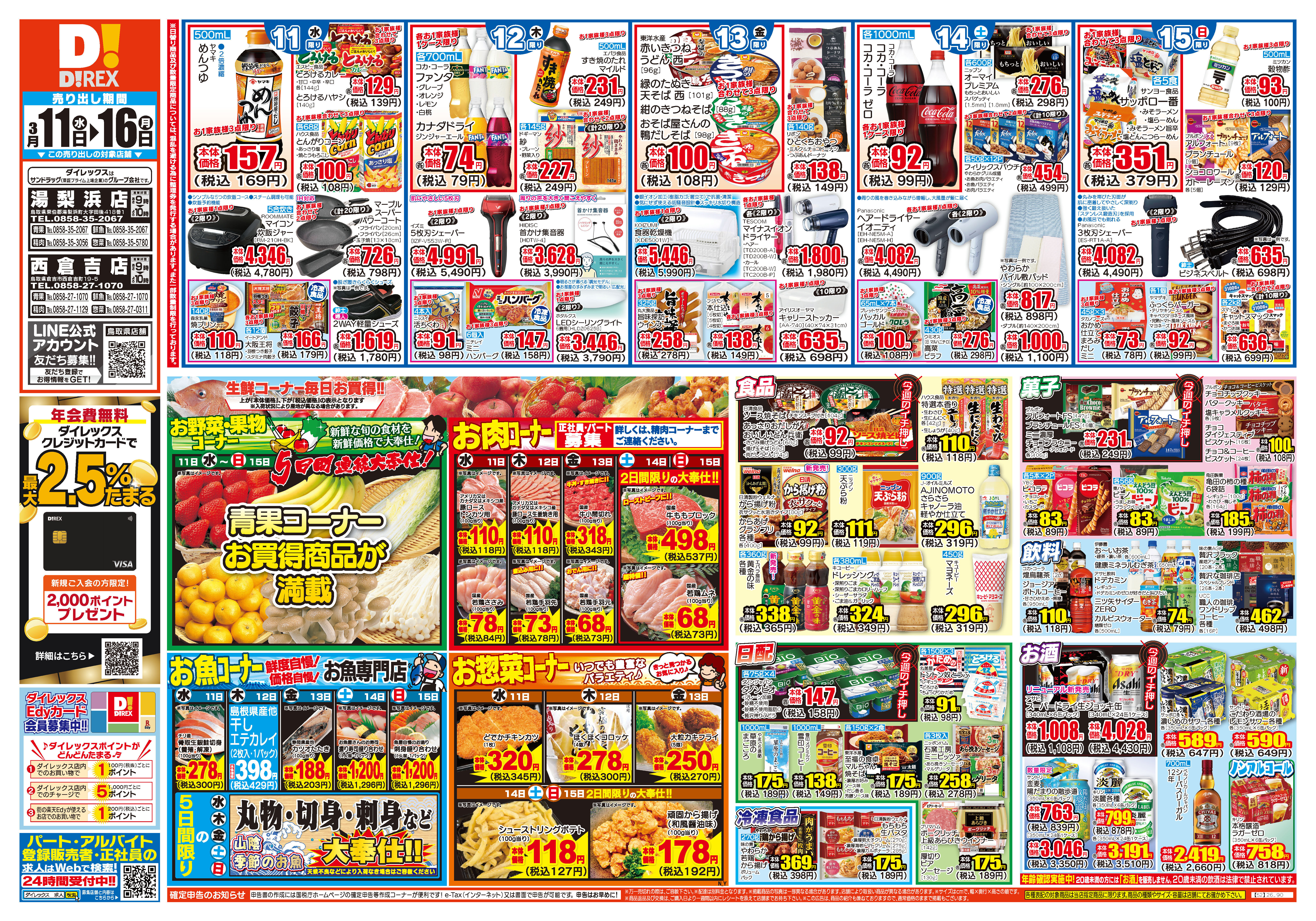 10日は新鮮青果大放出!!:11日は水曜水産安っ水ディ:12日はお肉のボリュームパックがお買得!:春のスイーツ揃えました